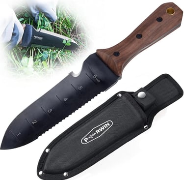 Lastly, a multifunctional tool I use in the garden, a Hori Hori, for planting, weeding, and digging, can also be useful to mix the soil medium together and scrape off excess soil when forming the blocks!